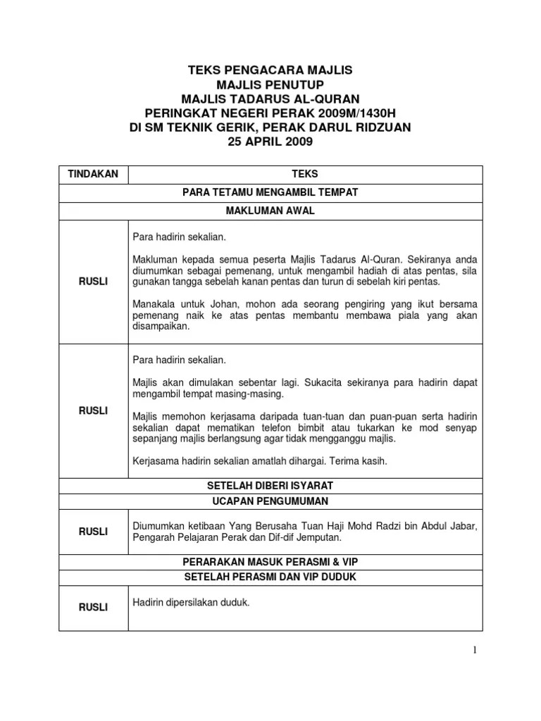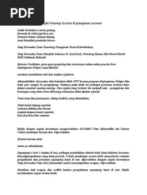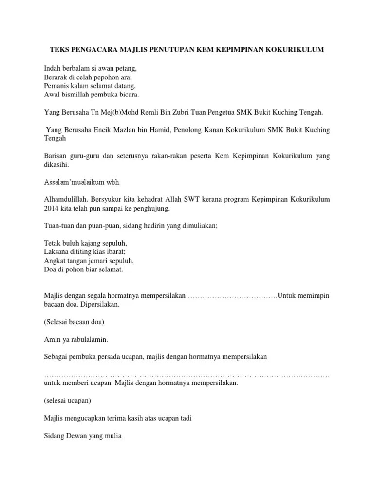 Teks Pengacara Majlis Kursus Kepimpinan : Teks Ucapan Majlis Penutup Pdf